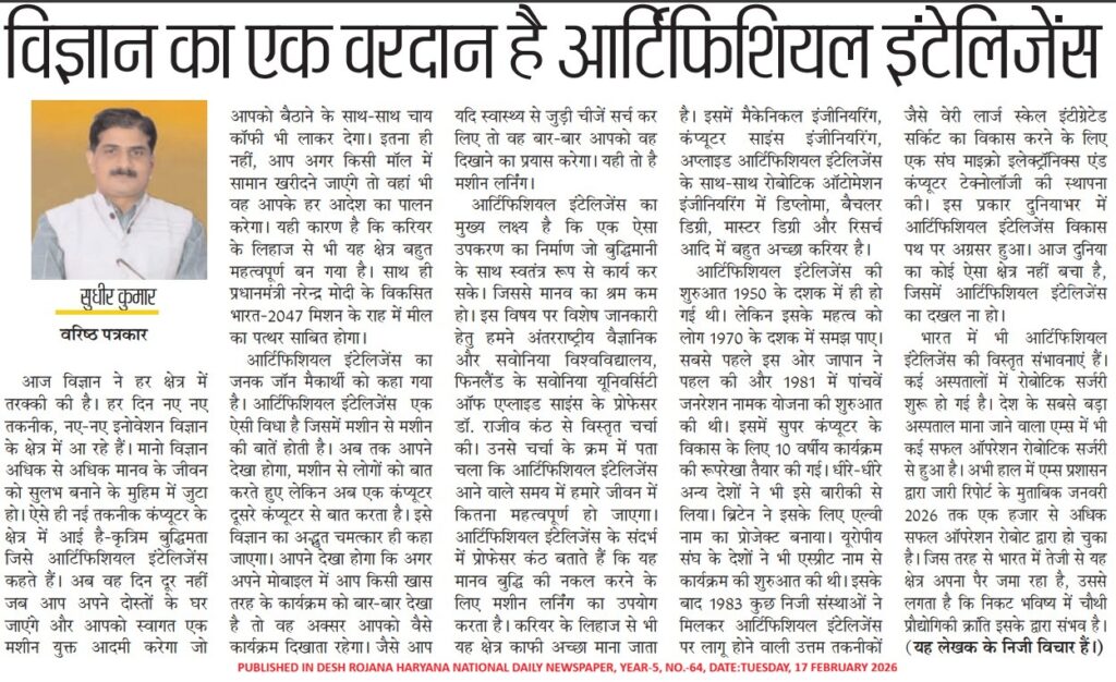 AI topic is explained in Amar Bharati Daily News Paper in June 2023